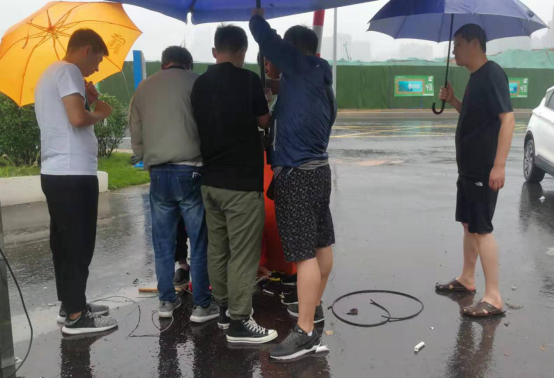 此时“利奇马”台风已经开始影响济南,而停车场的信息化工程,需要强电、弱电、手机信号优化等一系列施工改造,以及视频设备安装为了确保出入口附近地面沟槽的安全,工作人员专门找来5把太阳伞遮挡雨水。然而大风袭来,太阳伞瞬间被撕裂……